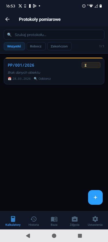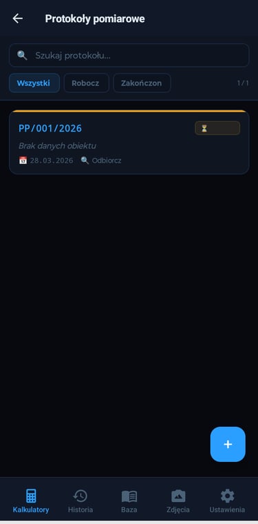 Opis: Kreator protokołów pomiarowych zgodnych z PN-HD 60364-6. Prowadzi krok po kroku: dane obiektu, warunki, sprzęt pomiarowy, tabele wyników (12 typów pomiarów), zdjęcia, podpisy elektroniczne. Automatyczna ocena wyników i generowanie profesjonalnego PDF ze stopką firmową.